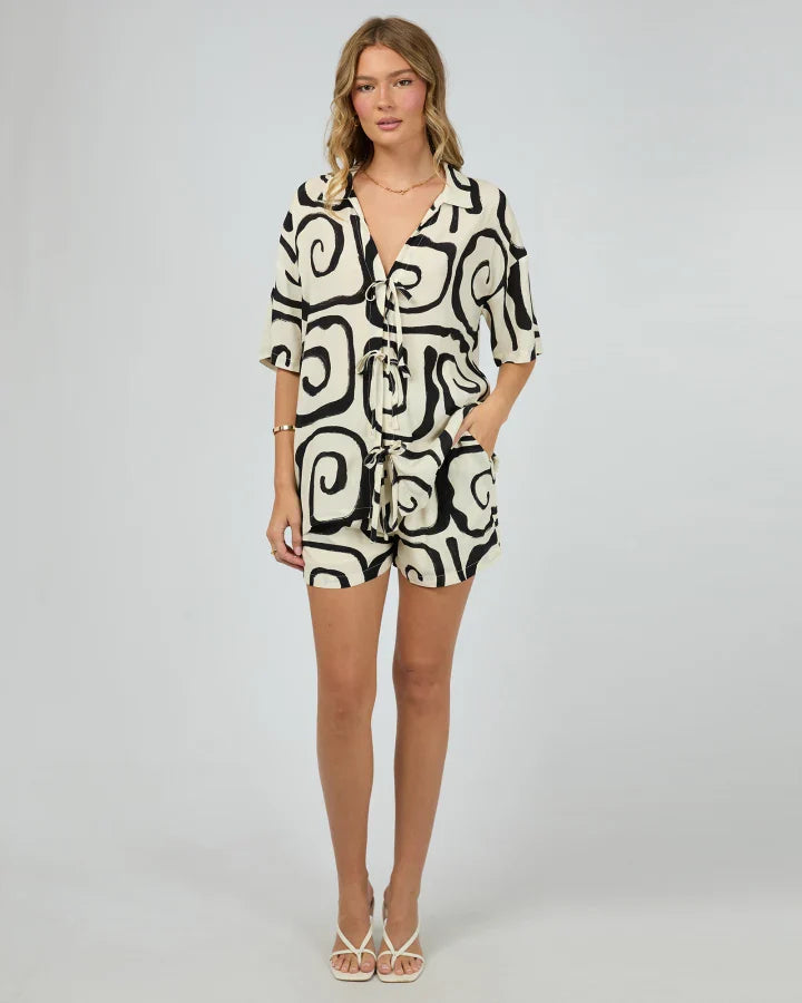 Meet your new favorite duo: the Jorge Romee Shirt and matching shorts. Crafted from breathable 100% viscose, this lightweight set keeps things cool and comfy on sunny days. The tie-up front adds a fun, modern spin, while the coordinated shorts seal the deal for effortless, laid-back style. Perfect for beach strolls, brunch dates, or anywhere summer takes you with a splash of playful charm!