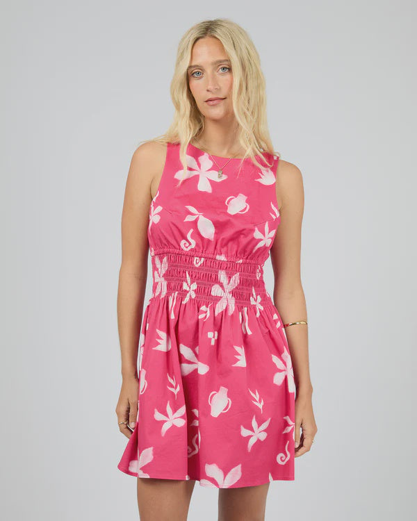 Make a bold entrance this season in the All About Eve Fleur Mini Dress, your new statement piece for sunny days, long lunches, and girls’ weekends. Featuring a vibrant all-over print, this mini dress combines a flattering high neckline with feminine ruching at the waist to create shape and definition. The adjustable tie at the back of the neck adds a playful touch while ensuring the perfect fit. Crafted from a comfortable cotton–elastane blend, it moves with you and keeps you cool all day long. Fun, fresh, and full of personality, this is summer dressing made easy.
