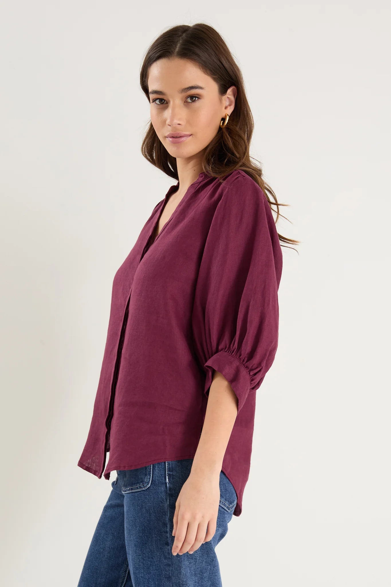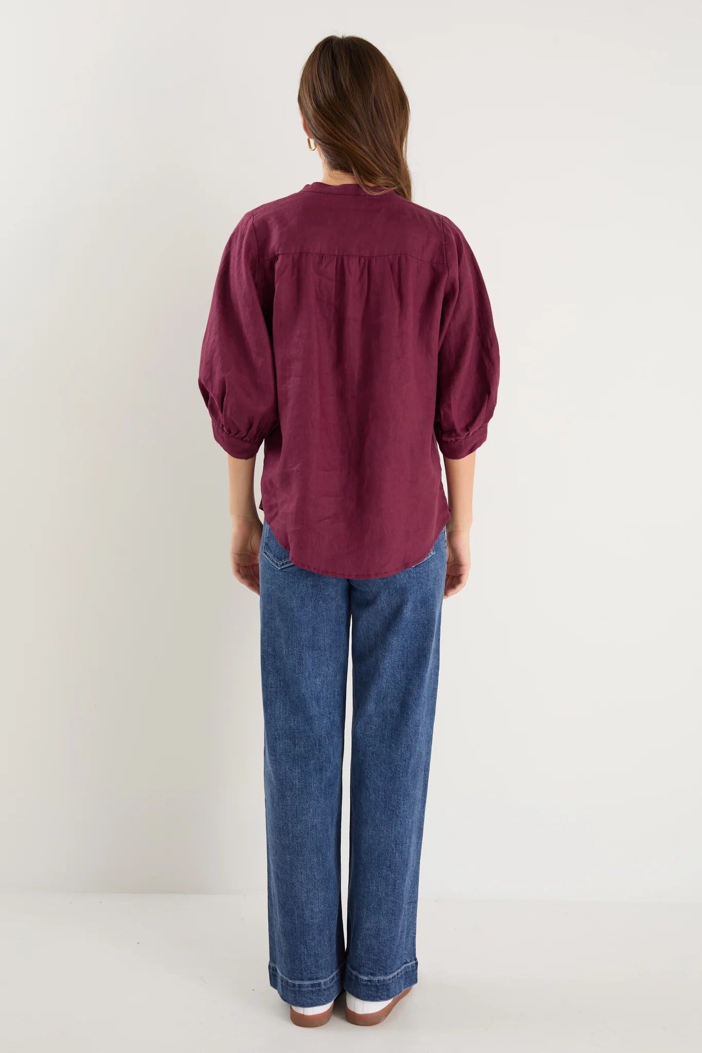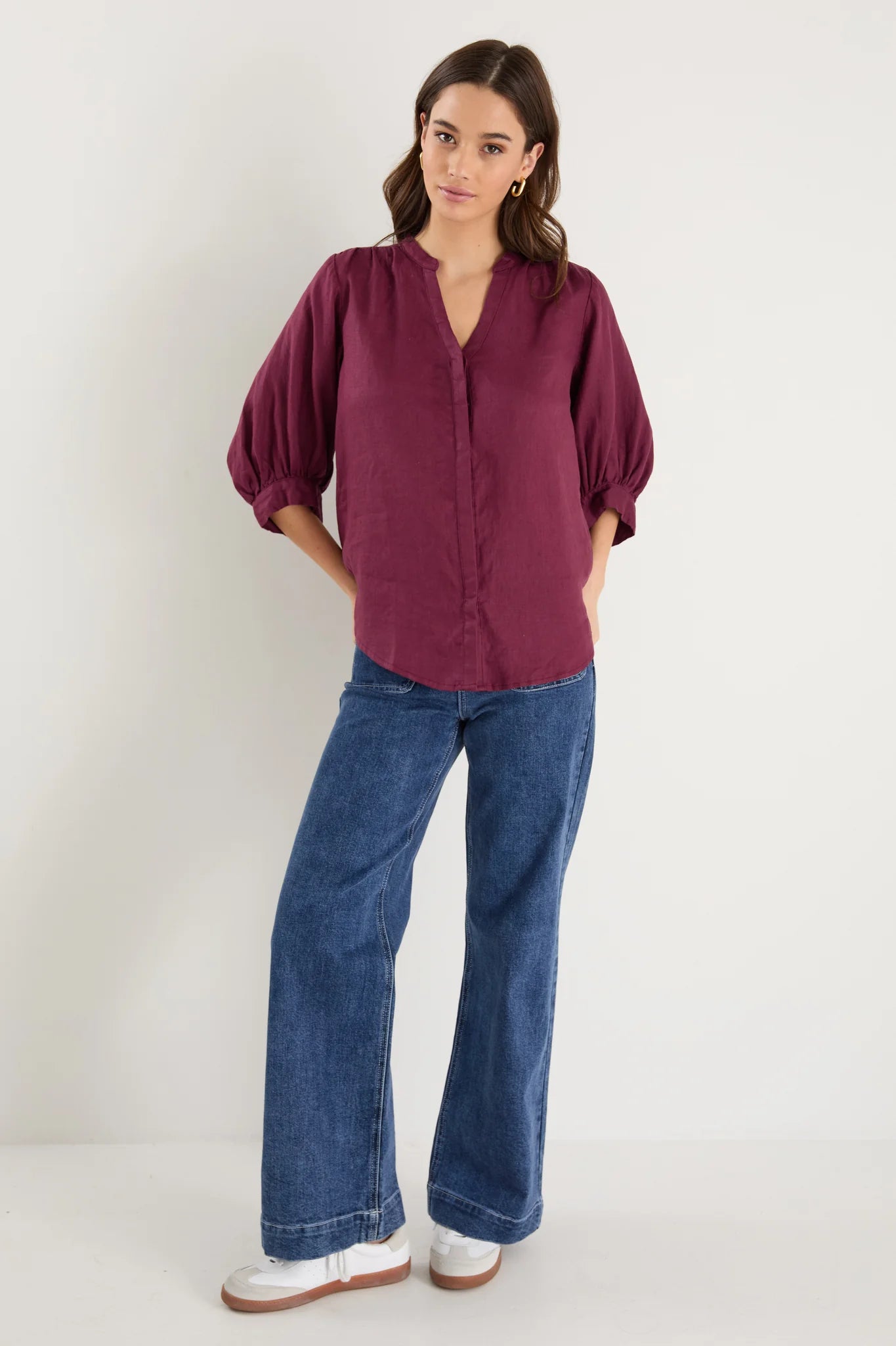 Say hello to the Deity Burgundy Linen Puff Sleeve Blouse by By Rosa—your new wardrobe MVP! Made from breathable washed linen, this lightweight blouse pairs perfectly with wide-leg jeans and chunky sneakers for effortless cool. Its puff sleeves add a fun, flirty vibe that’s as versatile as your day demands.