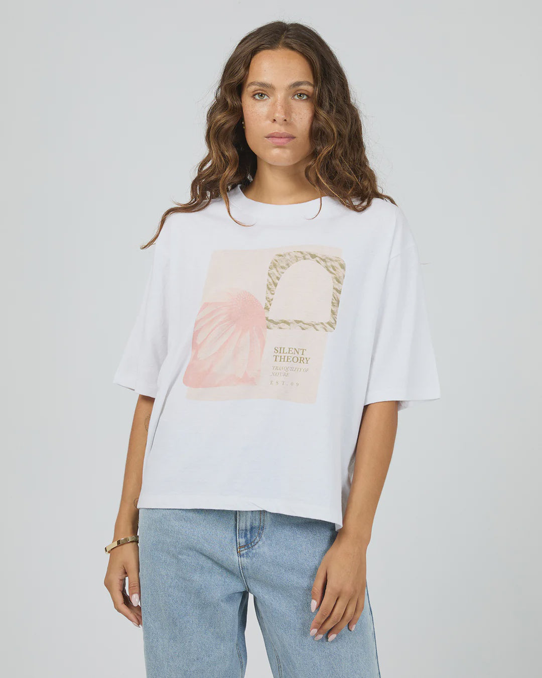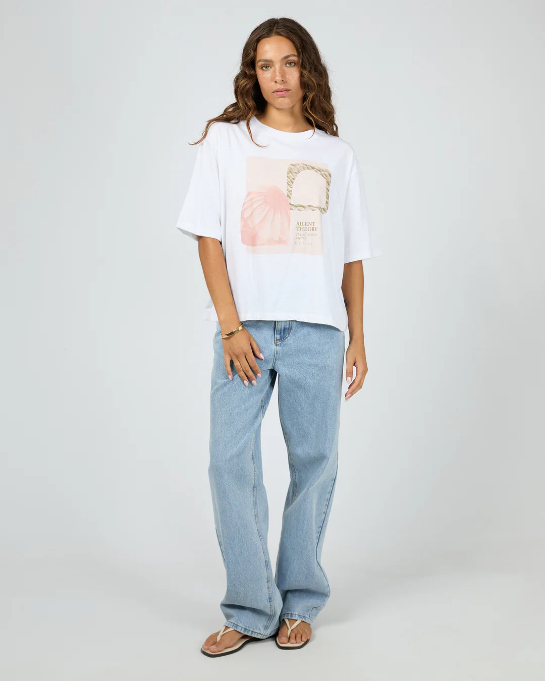 If you love an easy graphic tee, the Tranquility Tee is your go-to for effortless everyday style. Crafted from a soft, lightweight cotton linen blend, this tee offers a breathable feel with a relaxed, slightly shorter fit that pairs perfectly with high-waisted denim. The custom chest graphic adds a laid-back statement while keeping the look clean and wearable.