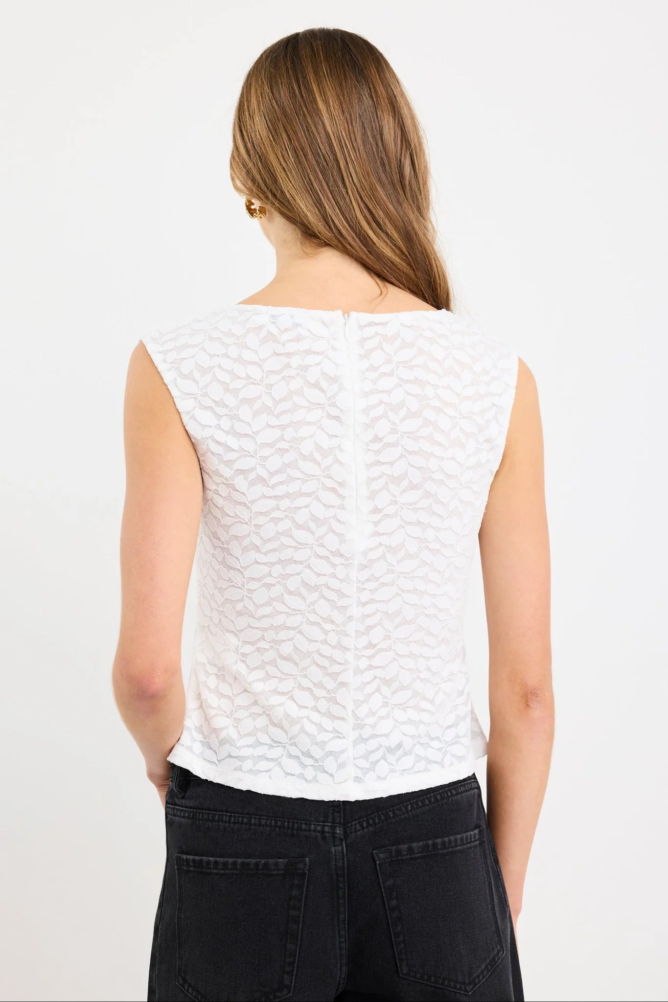 Finished with a sleek zip-back closure for a modern touch, this versatile lace top pairs beautifully with the matching Zeus Lace Skirt in Ivory or styled back with tailored pants or denim. A timeless piece with a playful edge, designed to elevate any outfit.