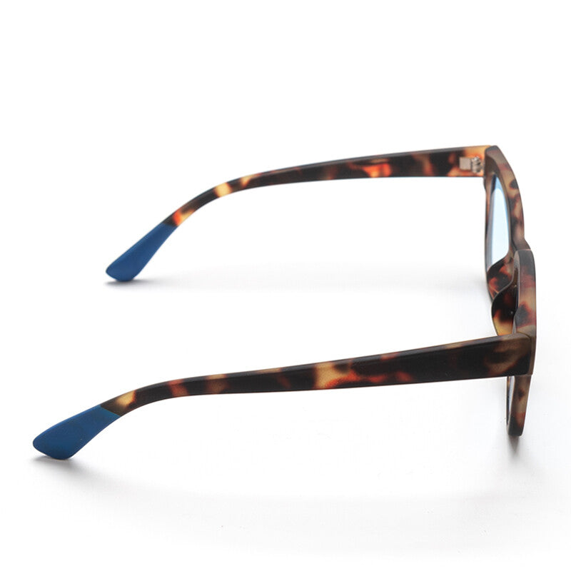 Make a statement in the Giovanni Sunglasses in Havana and Blue with Brown Gradient Lenses. Designed with a flattering shape that’s not too rounded and a generous focal length, these frames blend timeless design with a modern edge. Crafted from an ultra-soft touch material, the Giovanni offers all-day comfort and a smooth, luxurious feel. The Havana-and-Blue frame brings warmth and depth, paired perfectly with brown gradient lenses for a sophisticated finish. Featuring light filter category 3 (8–18% light transmission) and UV400 protection, they provide reliable sun coverage while keeping your look effortlessly cool.